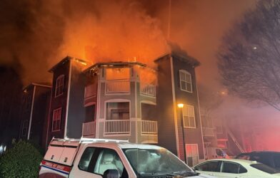 Firefighters were dispatched at 7:28 p.m. to a reported business fire at Dillard’s, 3333 Buford Drive, after 911 callers reported flames coming from a dumpster near the mall and spreading toward the building. Crews arrived within five minutes to find fire in a roll-off dumpster extending into the parapet wall of the three-story structure.